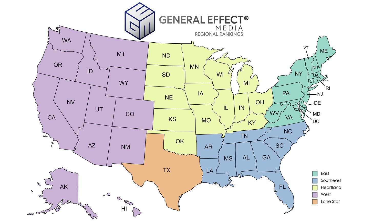 Starting in the first week of October, General Effect Media will rank the Top 12 marching bands in five separate regions throughout the competitive season. GEM writers, contributors, and Regional Experts vote individually. Bands are given points on a scale: No. 1 gets you 12, No. 2 gets you 11, etc. These ballots are then combined for their respective GEM Top 12 Regional Poll.