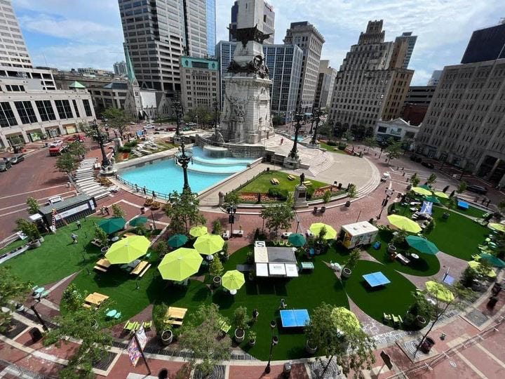 Perhaps the most significant change has been the new “SPARK on the Circle,” which just opened at Monument Circle in the past month. For those less familiar with Indy, Monument Circle is the infamous landmark at the center of downtown and serves as the central “hub” for most of the city’s grid pattern street layout. The historic Soldier & Sailors Monument, built over 100 years ago, sits in the middle of the circle with a large traffic circle surrounding it. The circle has also been a popular spot for pedestrians due to the number of stores and office spaces on the circle. The new SPARK on the Circle aims to improve the area for pedestrians even further. As a result, the southern half of the circle is now closed to vehicles, with the space turned into a popular hangout spot with food and beer vendors, live music, and community events that are all free to the public. So far, SPARK on the Circle has gotten positive reviews and maybe a popular spot to visit during World Championships.