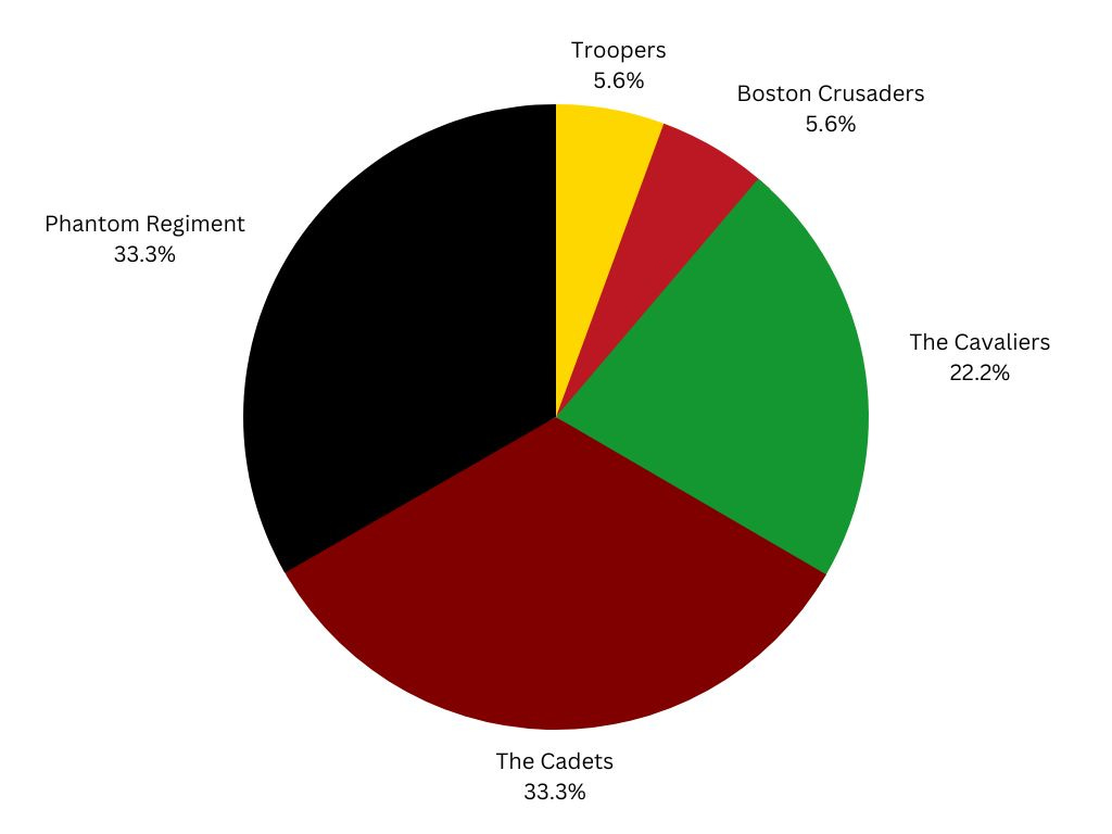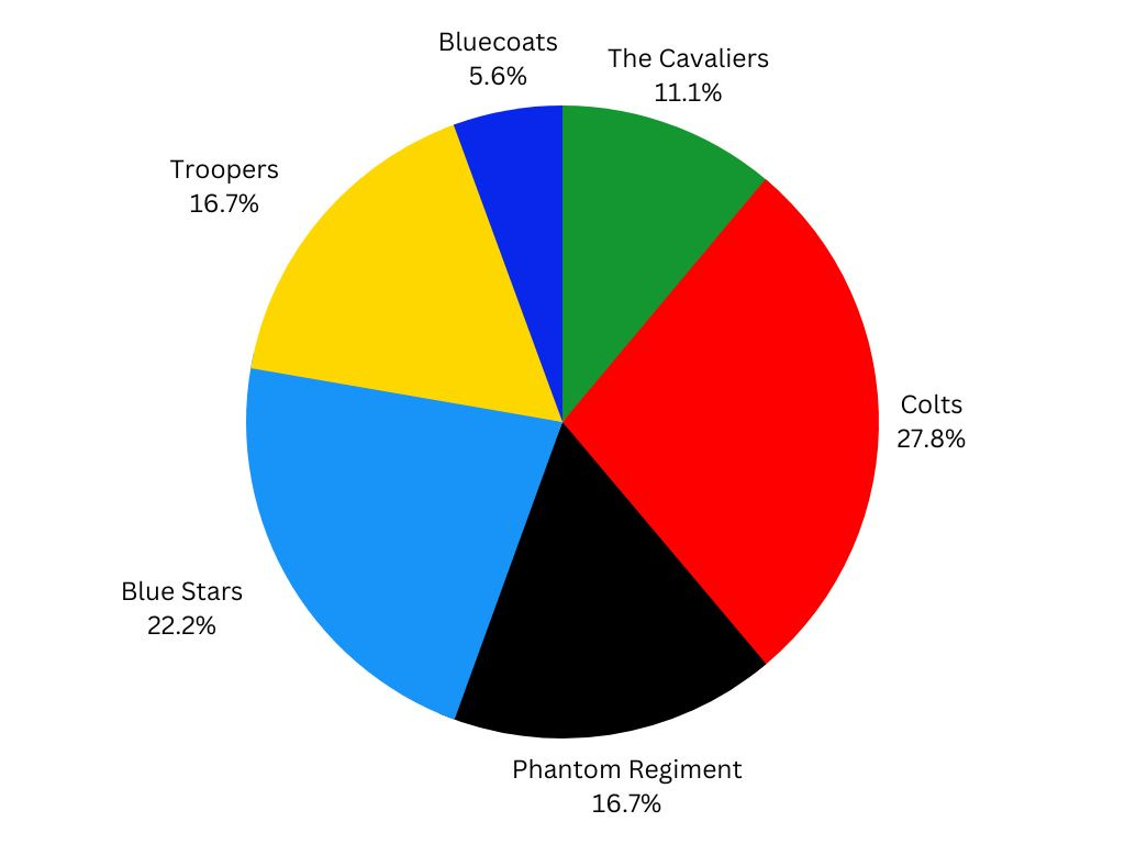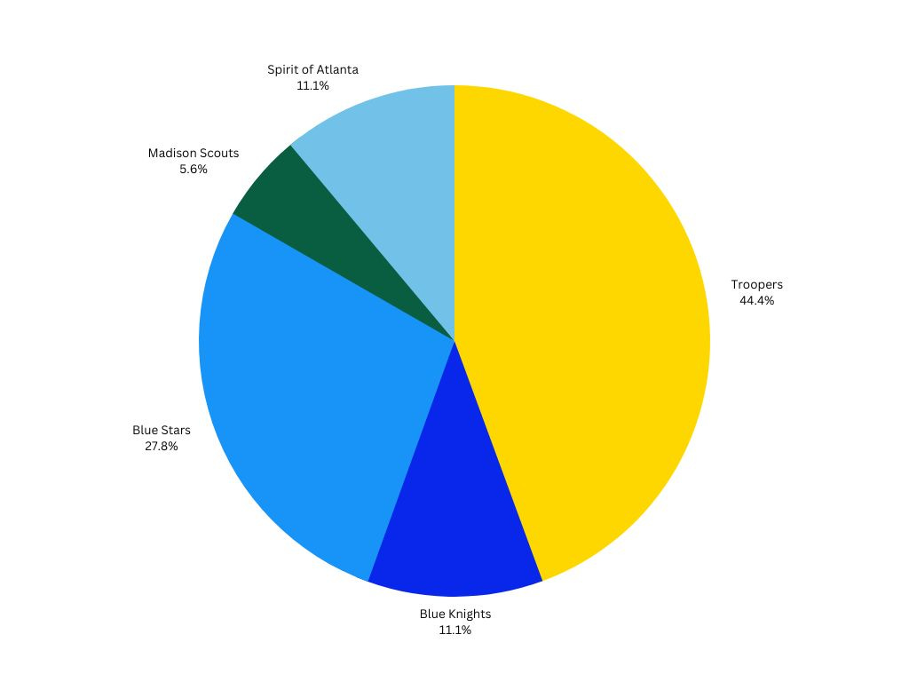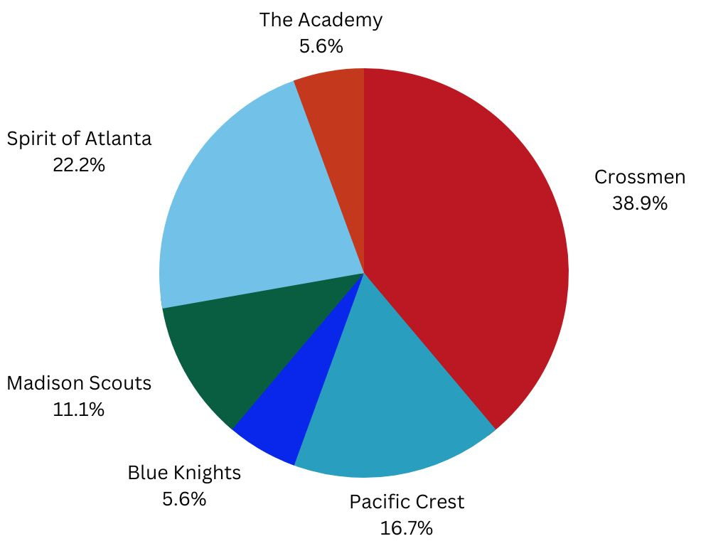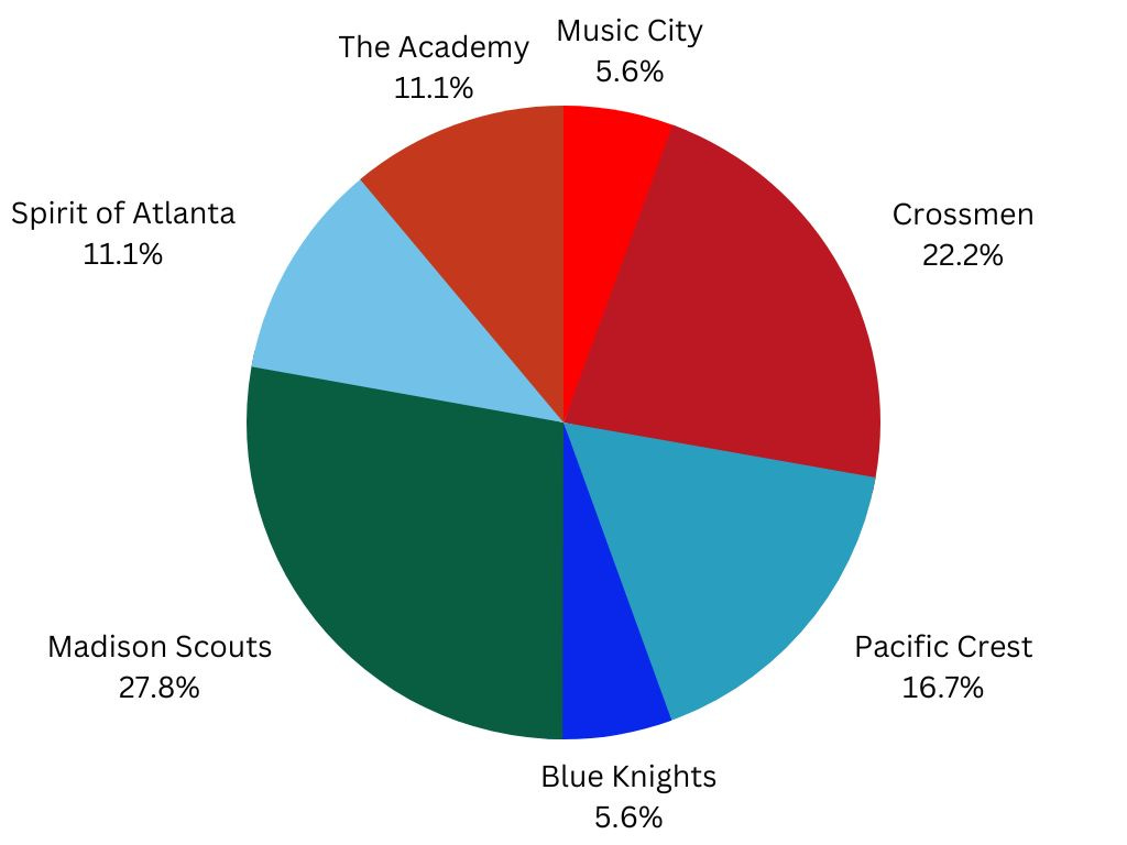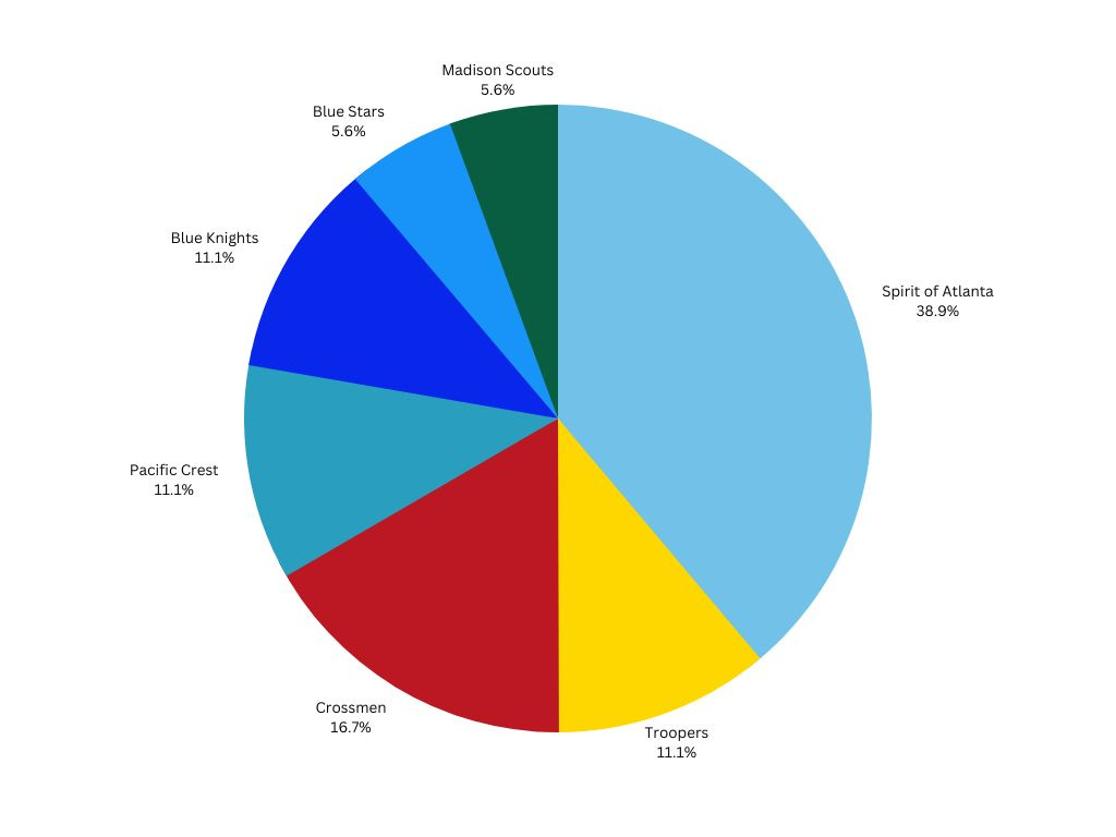 Below each corps, there is a graph showing the vote distribution for each placement. The corps with the most votes for each placement is not necessarily the corps that ended up in that spot, as we totaled it using our traditional polling method.