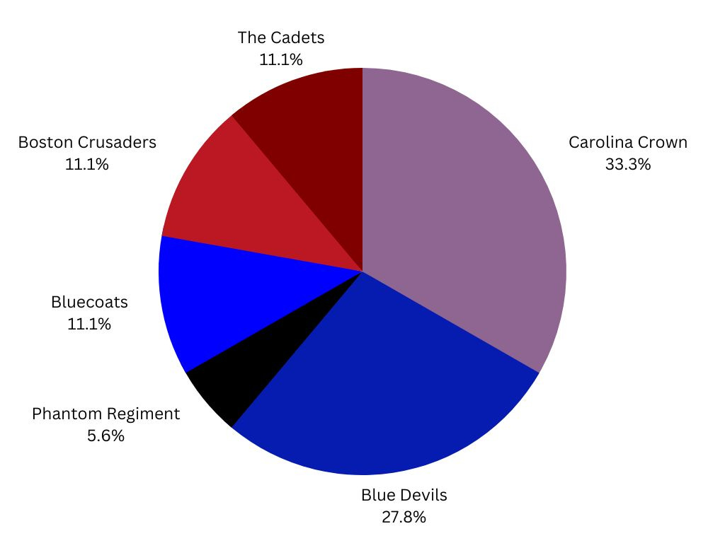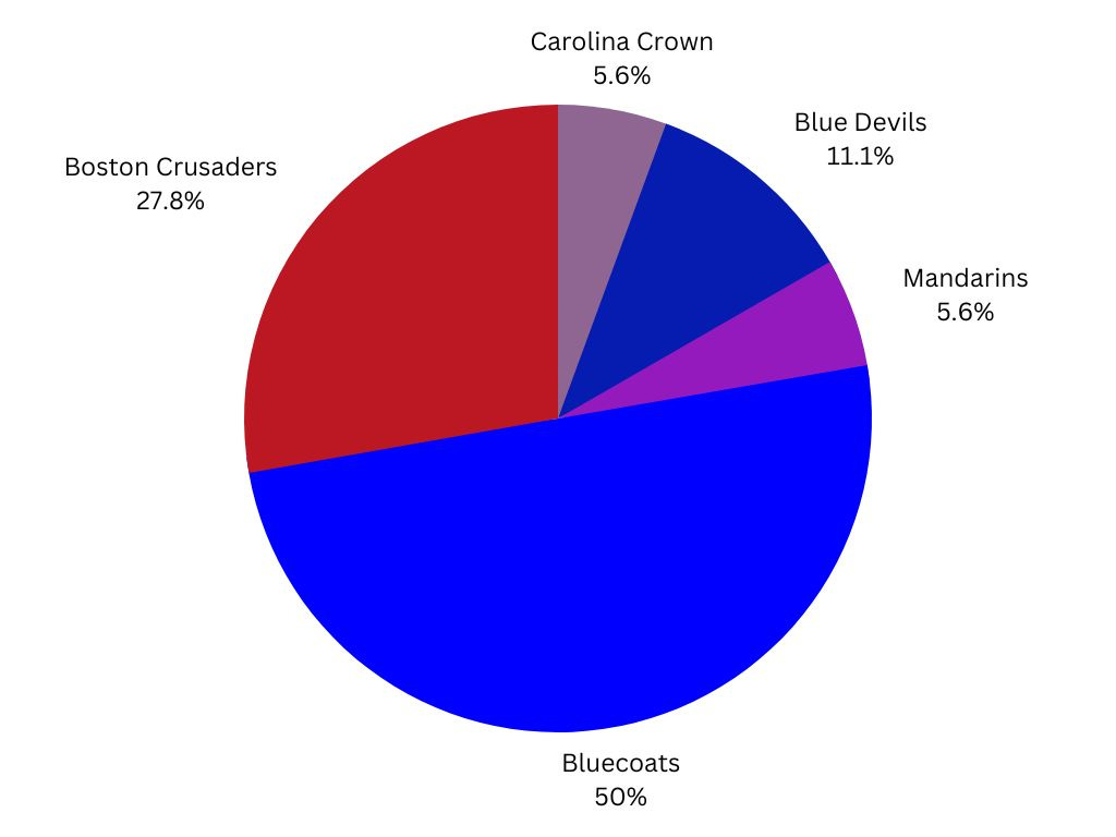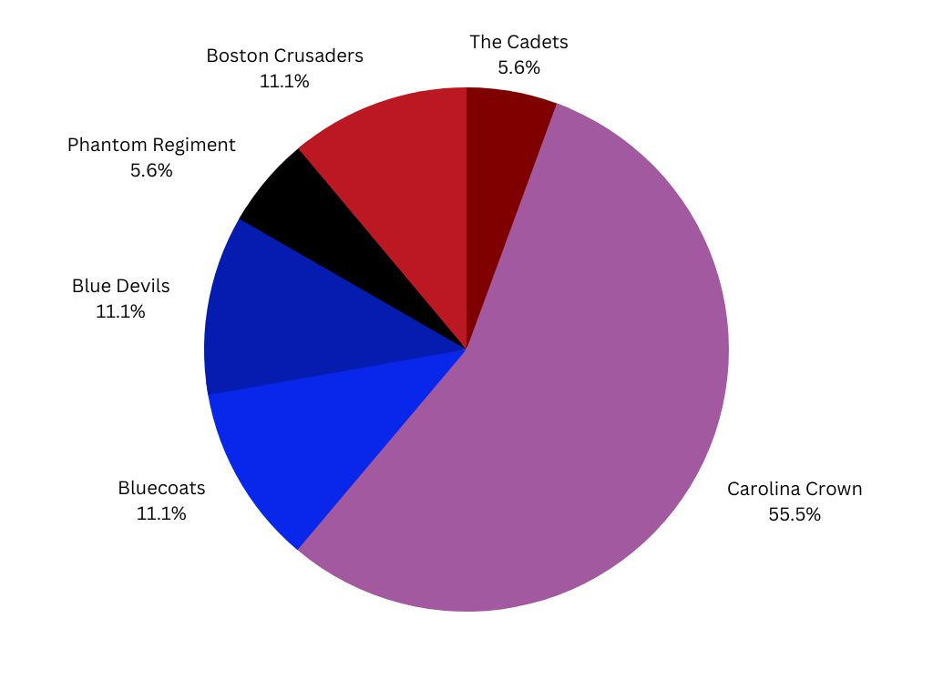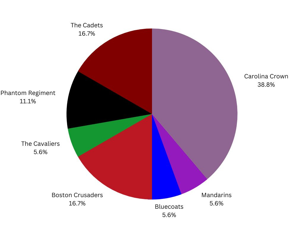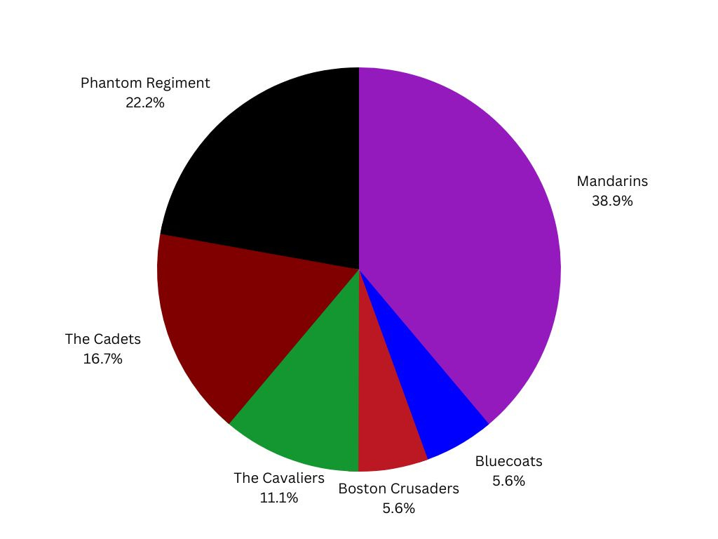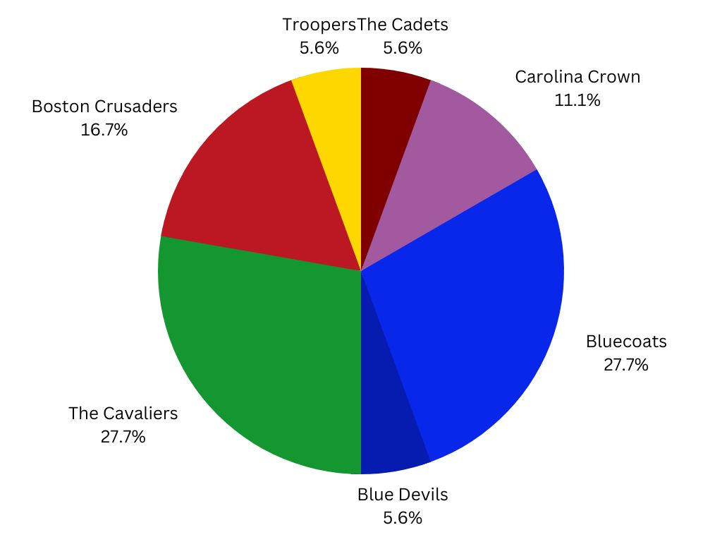 Below each corps, there is a graph showing the vote distribution for each placement. The corps with the most votes for each placement is not necessarily the corps that ended up in that spot, as we totaled it using our traditional polling method.