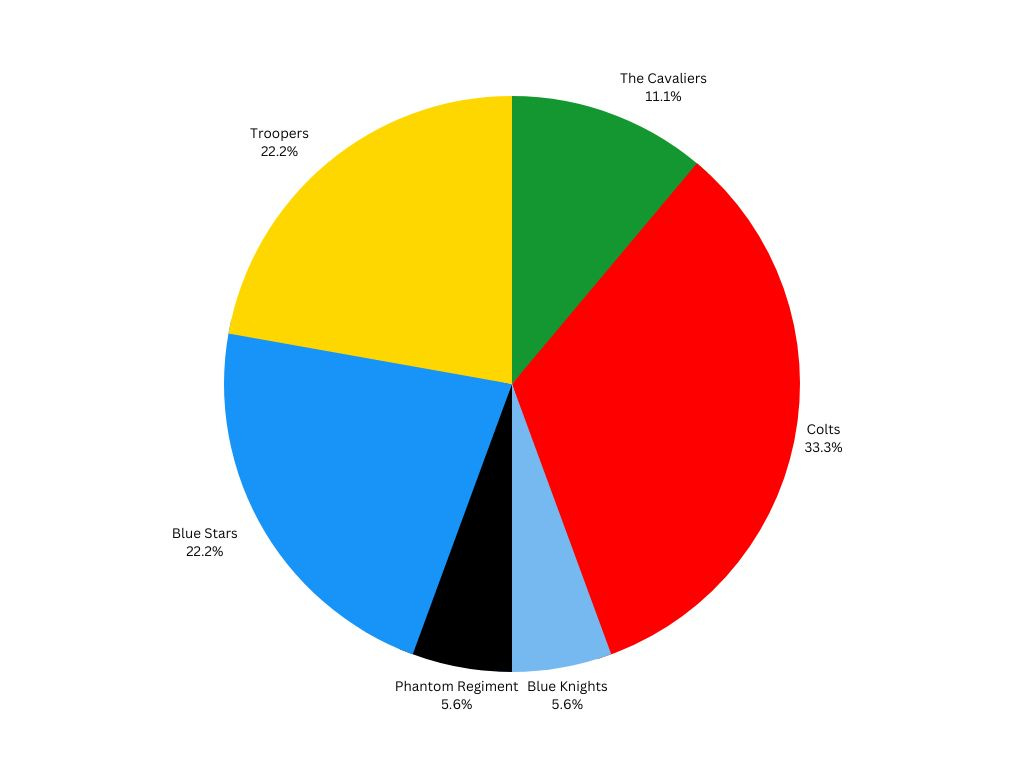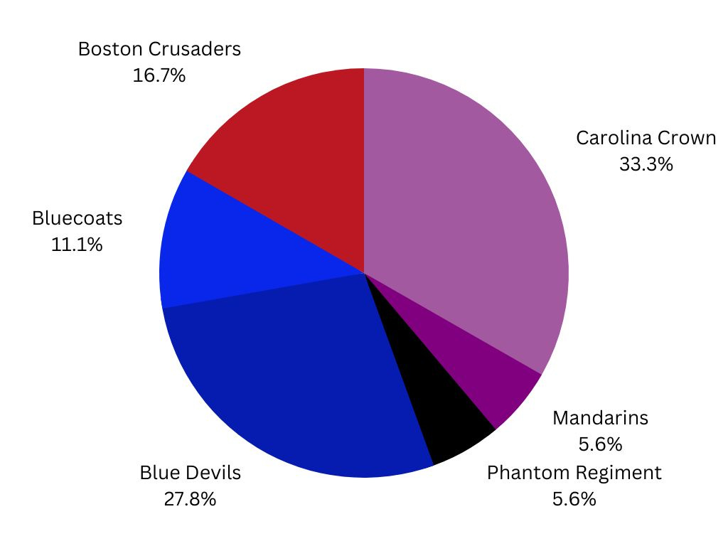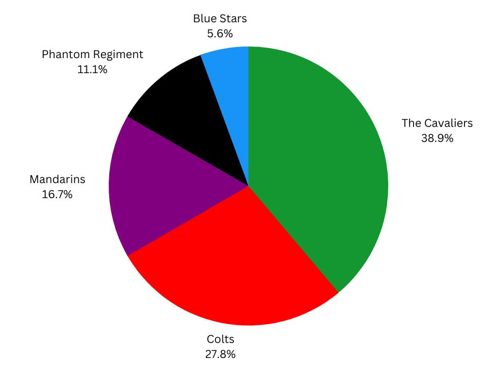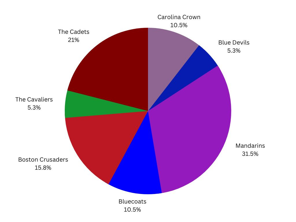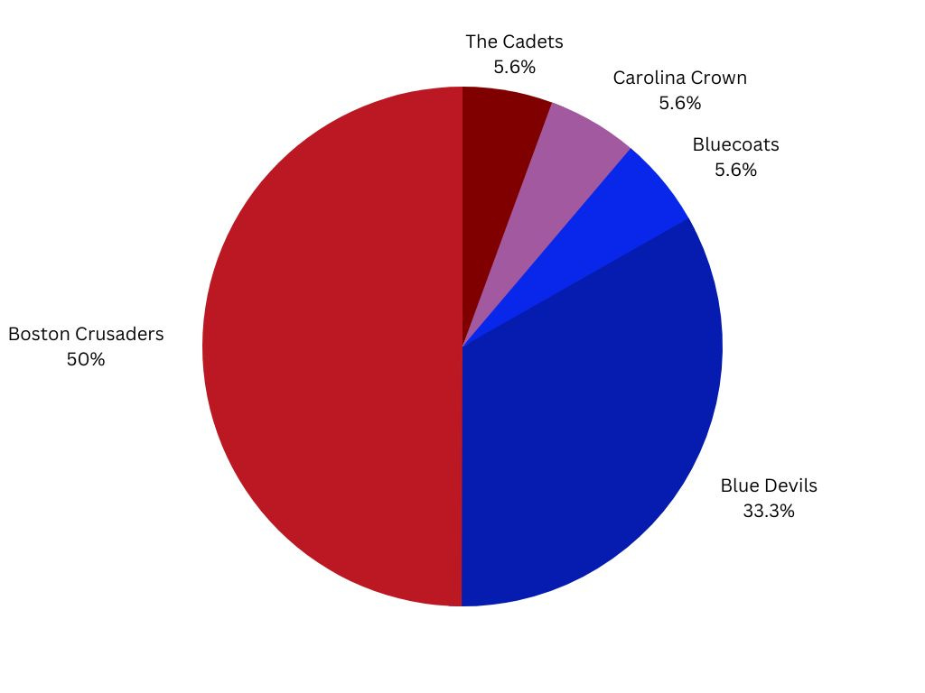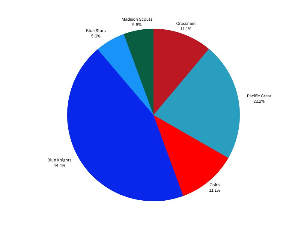 Below each corps, there is a graph showing the vote distribution for each placement. The corps with the most votes for each placement is not necessarily the corps that ended up in that spot, as we totaled it using our traditional polling method.