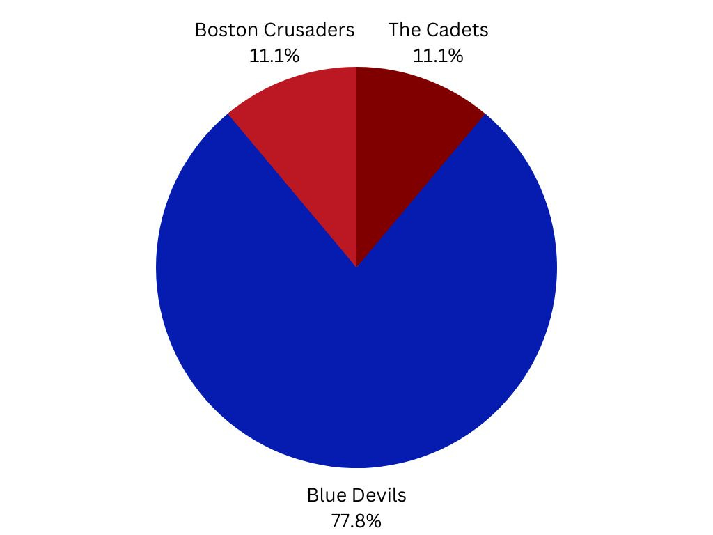 TIE - Bluecoats & The Cavaliers - 27.7% first-place votes